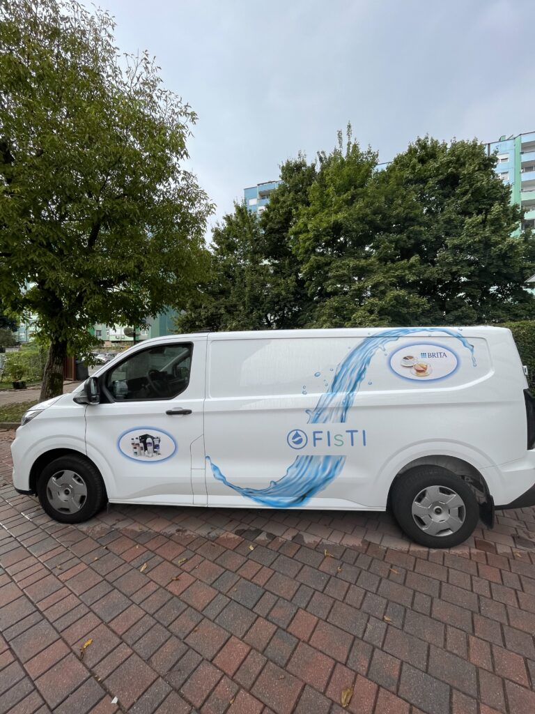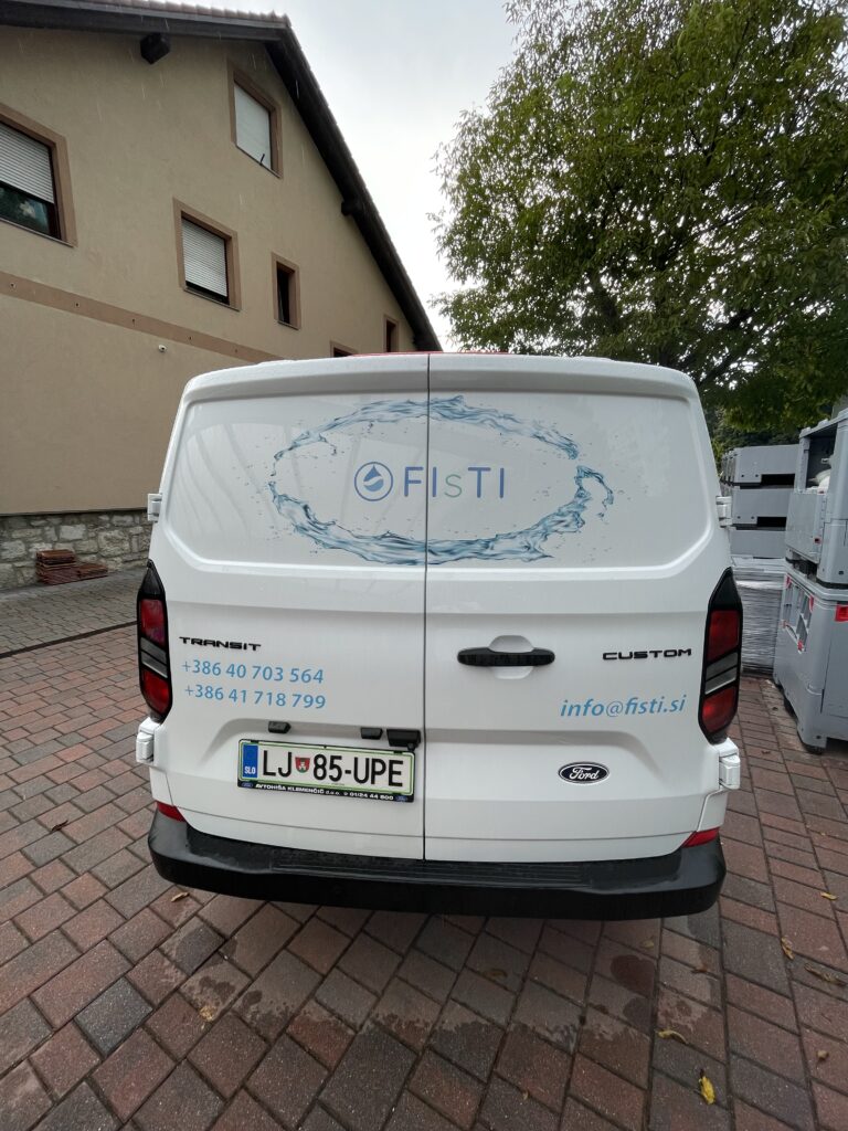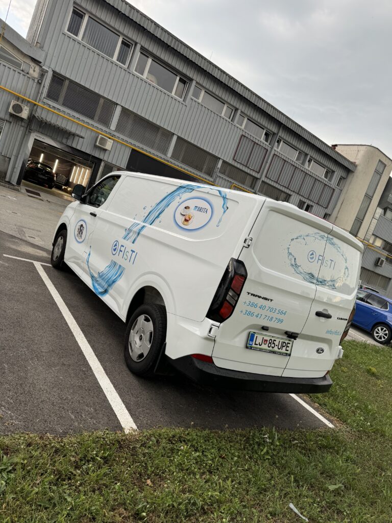 Za podjetje Fisti d.o.o. sem ustvaril grafično podobo za njihov službeni kombi, ki je povezana z njihovo dejavnostjo na področju obdelave vode in filtracijskih sistemov.