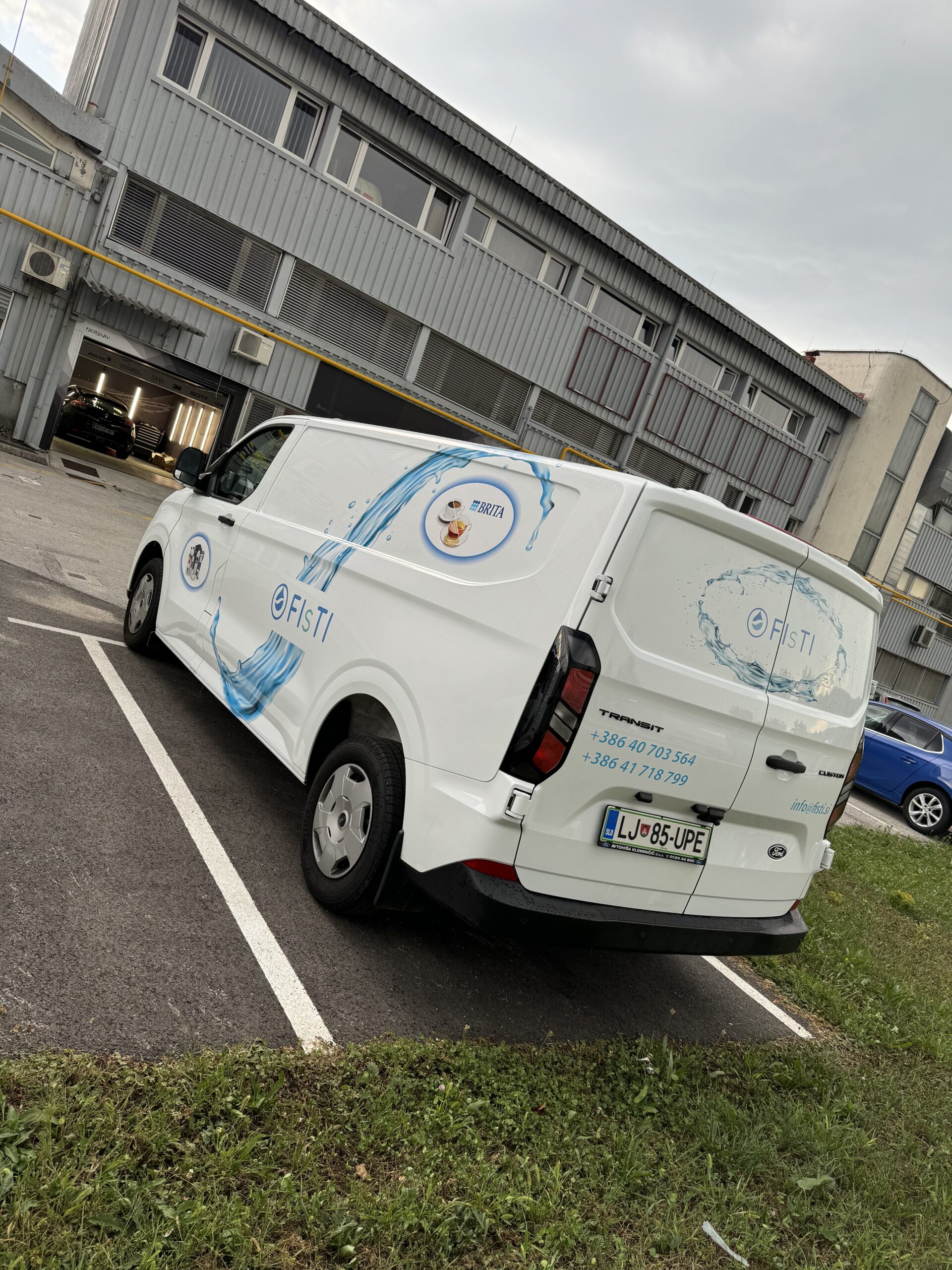 Cilj projekta je bil vizualno predstaviti njihovo zavezanost k čistosti vode in trajnostnim rešitvam. Dizajn vključuje elemente, ki simbolizirajo vodo in filtracijo, kar odraža njihovo dejavnost in ekološko usmeritev. Poleg samega oblikovanja sem koordiniral tudi celoten proces polepitve, od koncepta do končne realizacije, pri čemer sem poskrbel, da je bila grafika privlačna in skladna z identiteto njihove blagovne znamke.